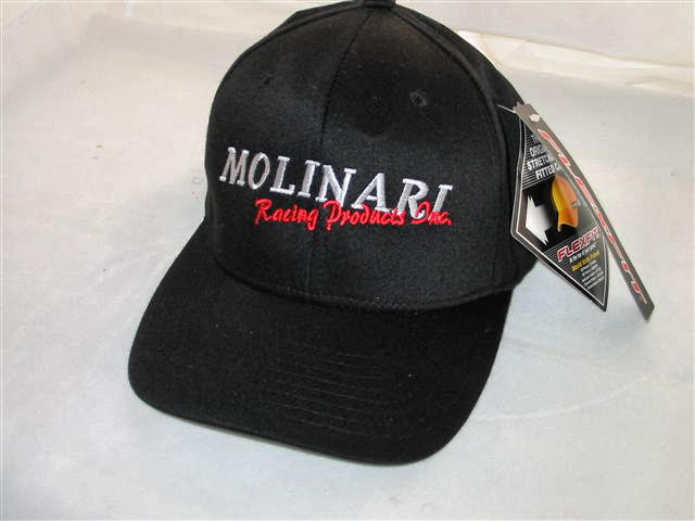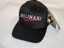 BLACK WITH "MOLINARI RACING PRODUCTS INC. IN SILVER AND RED EMBROIDERY.